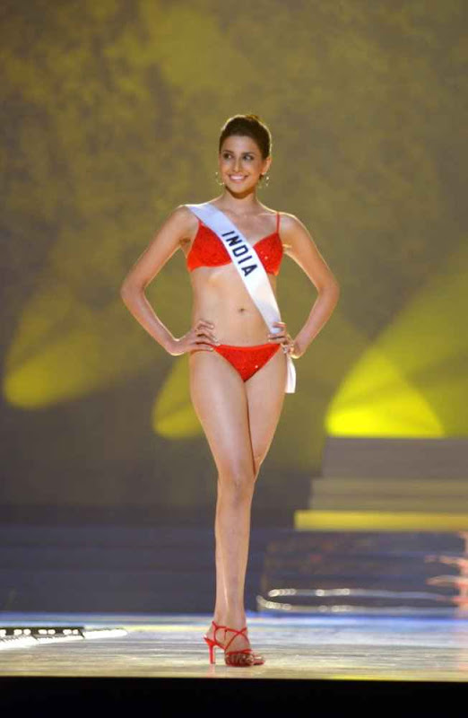 Celina Jaitley in a two piece bikini in swimsuit round of Miss Universe 2001Former Miss India Universe 2001; Regular at the page 3 circuit; Regularly wears clothes that look like they were made for a pre-teenager than her, and hopelessly bad actress, Celina Jaitley is seen here in the swimsuit round of Miss Universe. Actually she has worn more revealing clothes in Page3 parties than this,,, tsk tsk.Ekta Choudhry